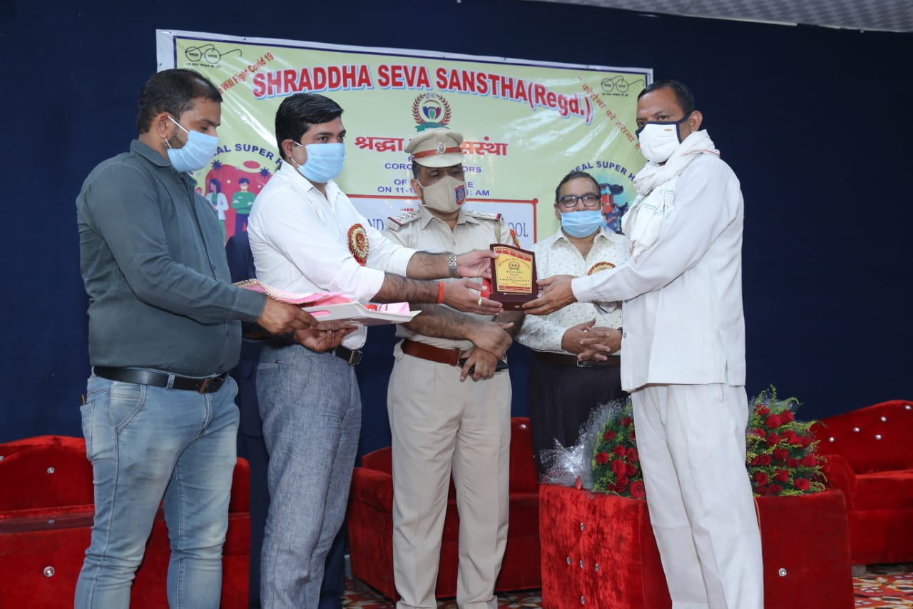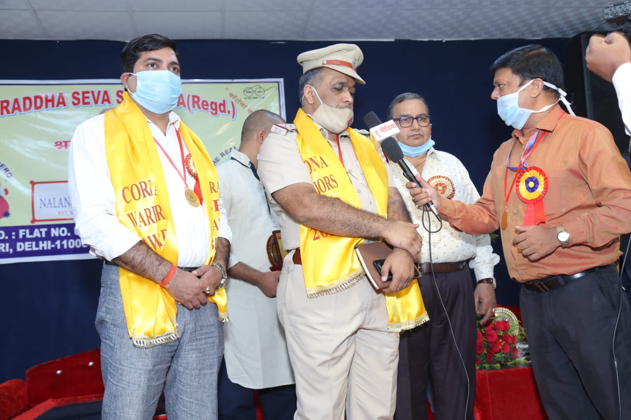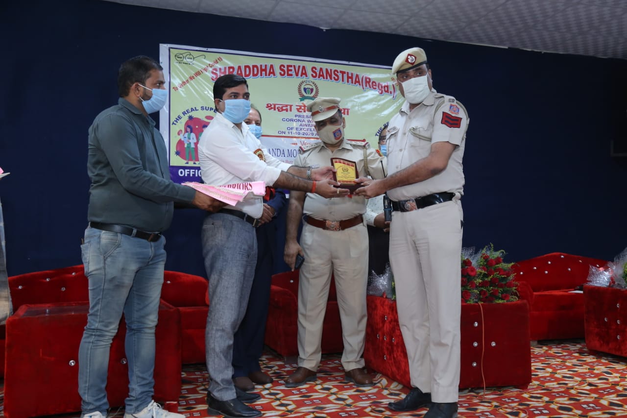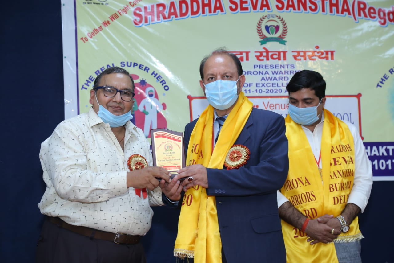 On dated 11th October 2020 (Sunday), In the auditorium of Nalanda Model Public School, Sant Nagar (Burari) 50 Corona Warriors were honoured by SHO Burari Sh. Suresh Kumar, Dr. Abdul Rehman Khadim Principal Green Valley College of Education, Sri Nagar (J&K) and Sh. Vikas Vats from the Parental School. Founder of Shraddha, Smt. Veena Chopra and Chairman Sh. Satya Prakash Bhardwaj Presided the function and welcome the Chief Guest. On this occasion Miss Komal Joshi, Sh. Rajveer Yadav, Sh. Rajeet Singh and Volunteers were present. On this auspicious occasion Sh. Suresh Kumar gave his blessings to Corona Warriors who are at the front-line of COVID-19 response. Together we will fight COVID-19 “As we contribute in our own way through social distancing and observing personal hygiene, let us salute our Corona Warriors” said by Dr. Abdul Rehman Khadim. Founder of Shraddha Smt. Veena Chopra gave vote of thanks. All Corona Warriors were honoured by angavastram, Shield, Medal along with some refreshment.