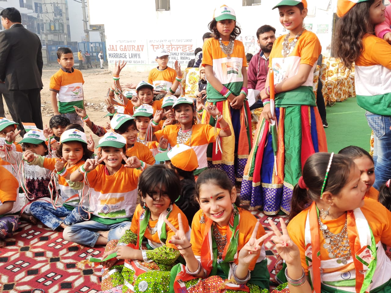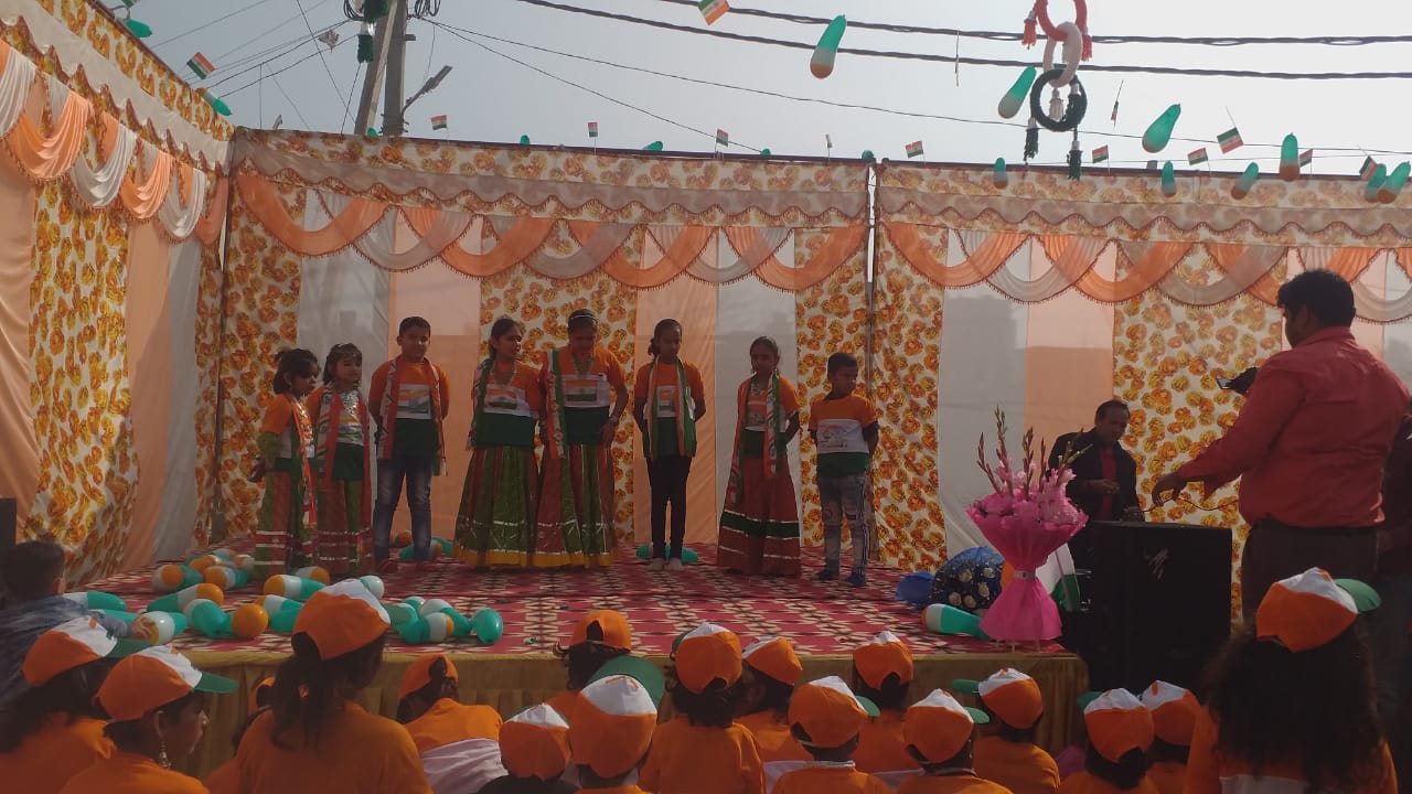 Tri colour T-shirts and National Flag in small hands of Shraddha children participated in 71 Republic day. MLA Shri Sanjeev Jha was the chief guest. Students performed Patriotic Song and Dance. Blessing were given by Shri Sanjeev Jha and chairman of Shraddha Seva Sanstha.